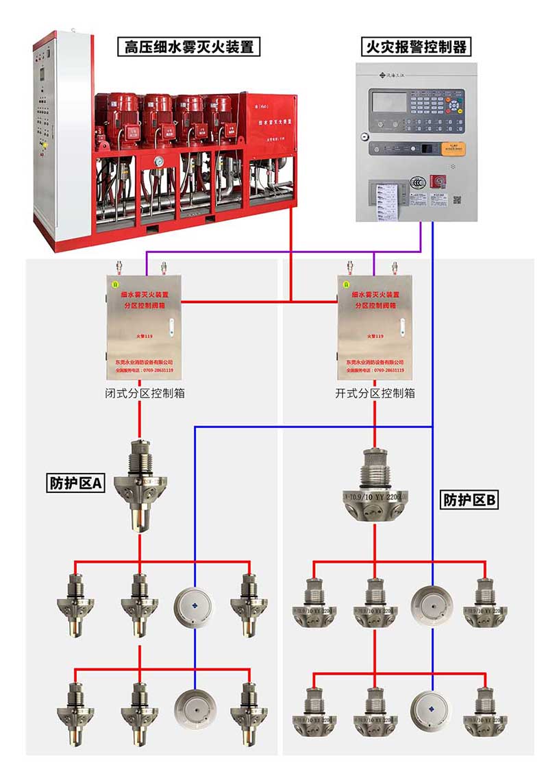 等組成,能自動(dòng)和人工啟動(dòng)并噴放細(xì)水霧進(jìn)行滅火或控火。